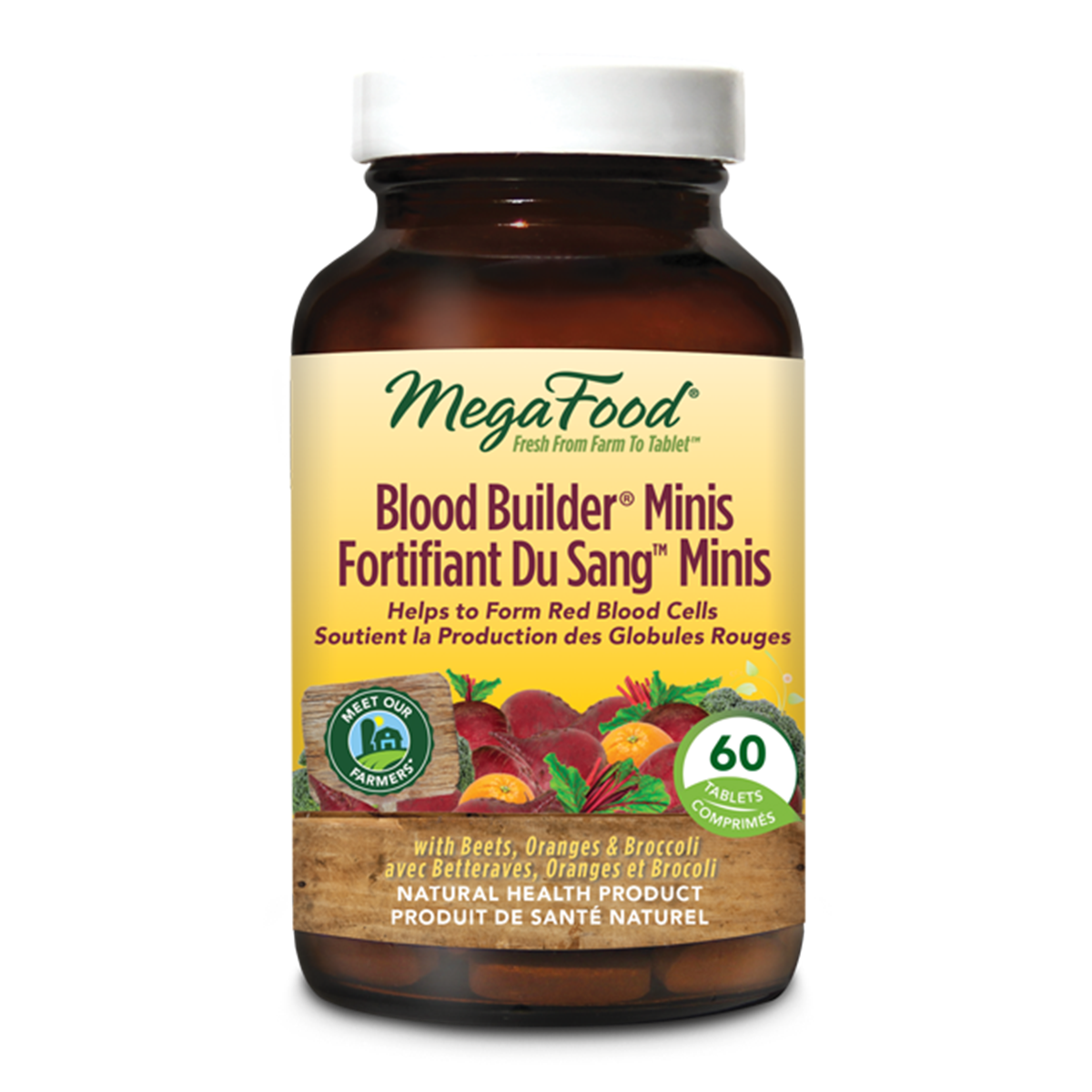 MegaFood Blood Builder Minis takes everything you love about our original Blood Builder and delivers it to you in a convenient mini tablet. It’s clinically shown to increase iron levels and reduce fatigue without common gastrointestinal side effects such as nausea or constipation (there, we said it!). We make it with nourishing whole foods, like beets and organic oranges, plus folic acid, and B12 for healthy red blood cell production, and vitamin C to Aid iron absorption. If building your blood without missing a beet (see what we did there?) sounds up your alley, this is the product for you.